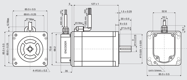 Der motoren mit encoder EM 3F3H-04D0 besteht aus einer SANYO DENKI Schrittmotoren SM 2863-5225 hat einen 85.5 mm großen Flansch ( NEMA 34 ) mit einem Haltemoment von 920 Ncm und standardsignal : DIFFERENTIAL mit Standardauflösung von 400 CPR.