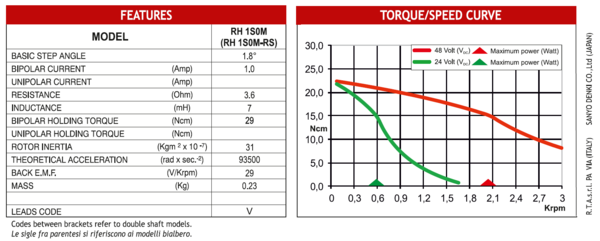 El motor paso a paso RH 1S0M se caracteriza por un tamaño de 42 mm. (NEMA 17) con un par de hasta 29 Ncm.