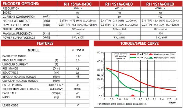 El motor paso a paso RH 1S1M-04D0 està equipado con un encoder con resolucìon de 400 cpr.